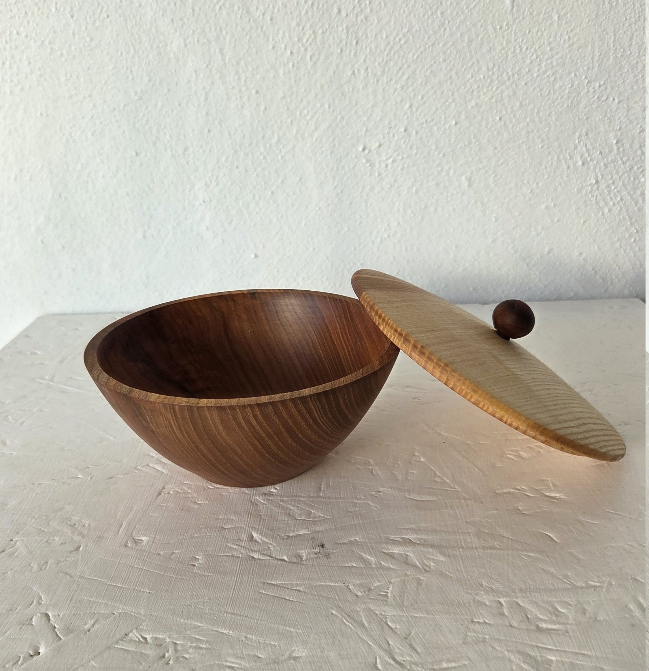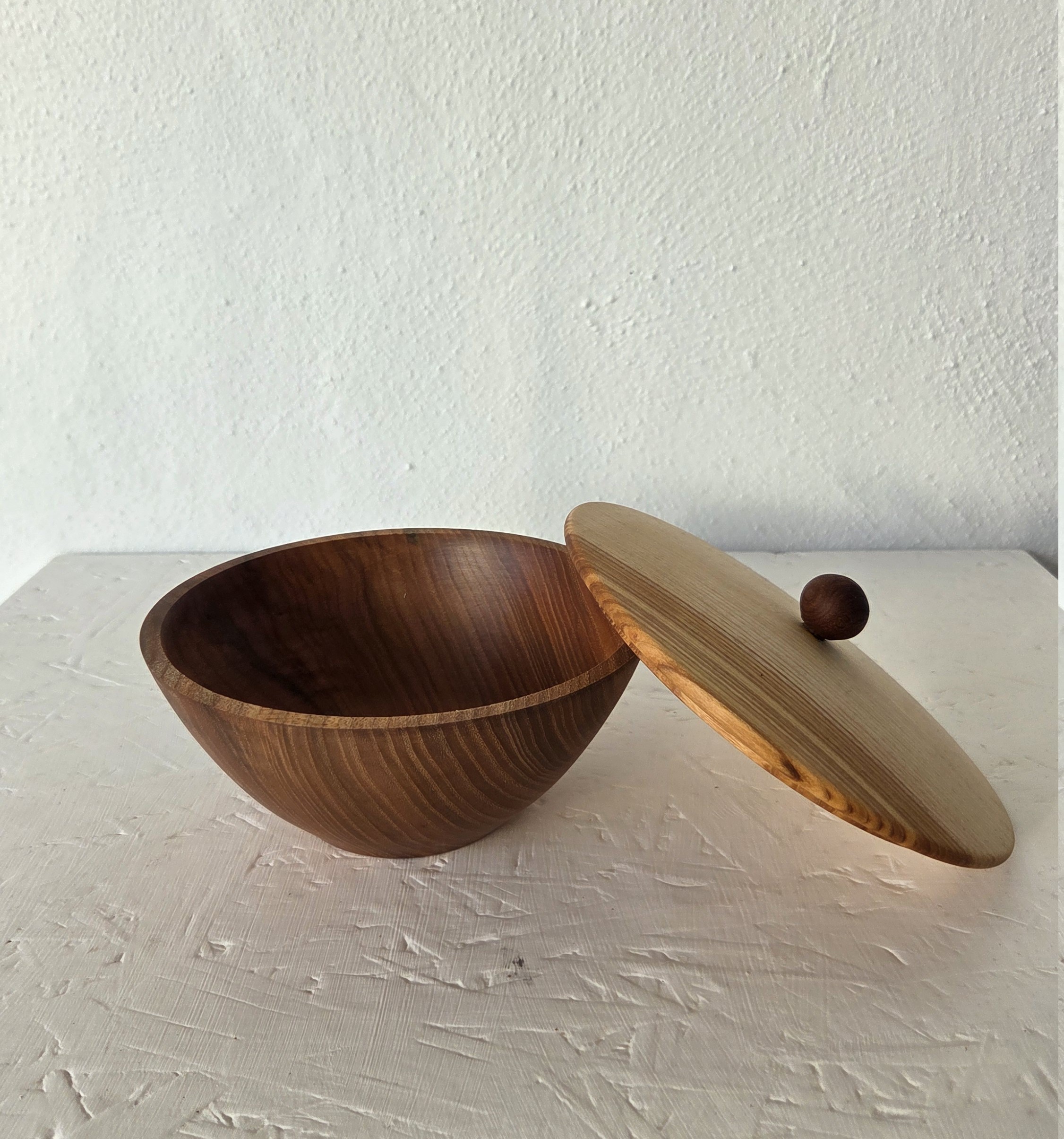 Lågkrukke - skål i elm og låg i ask, Ø 17 cm, H 7,5 cm