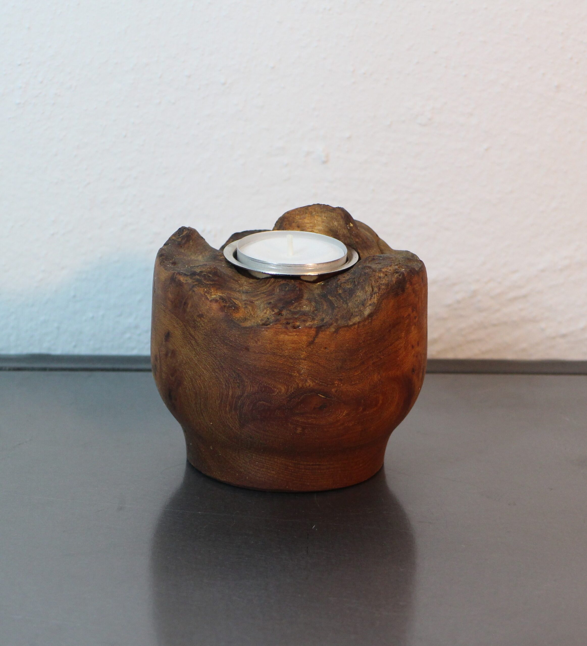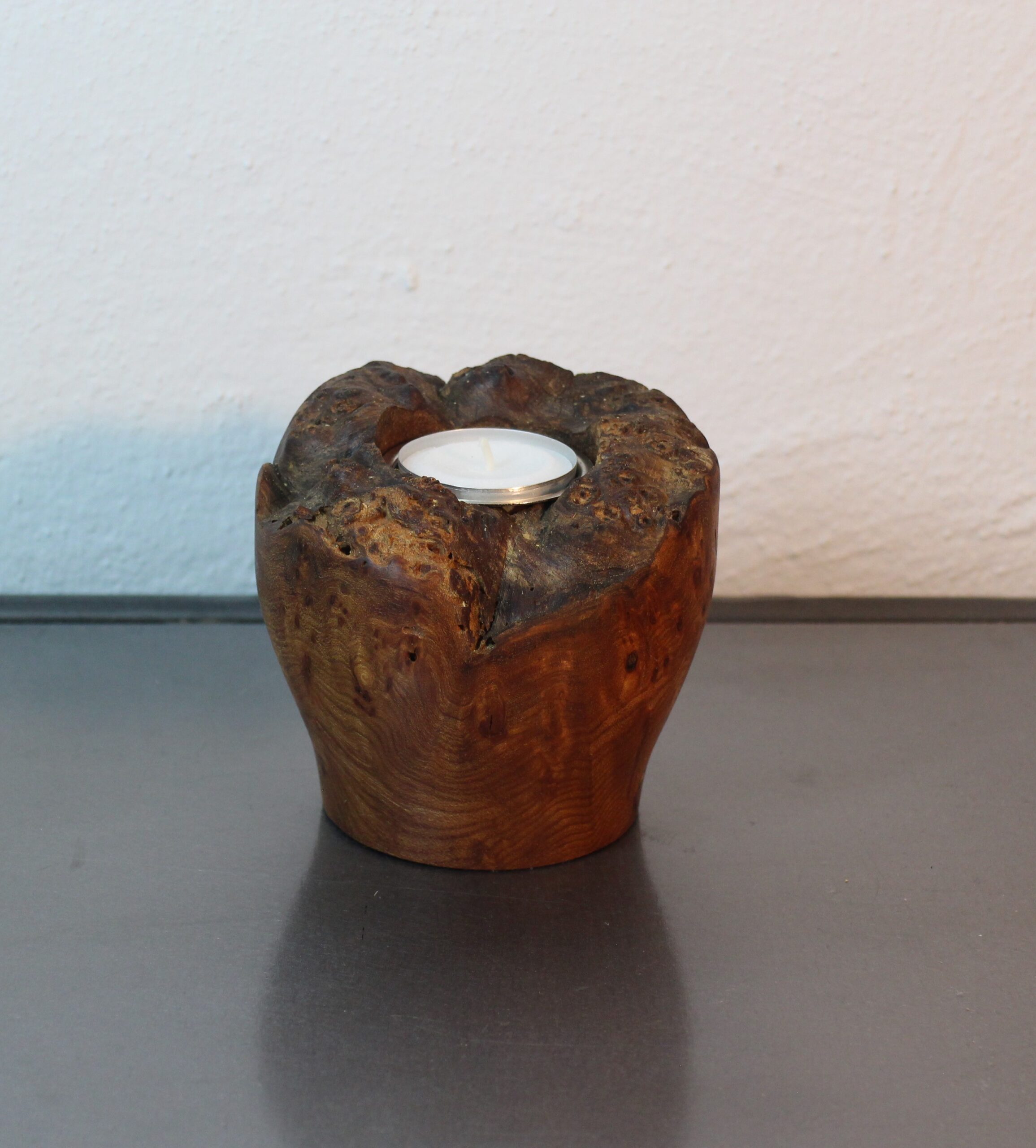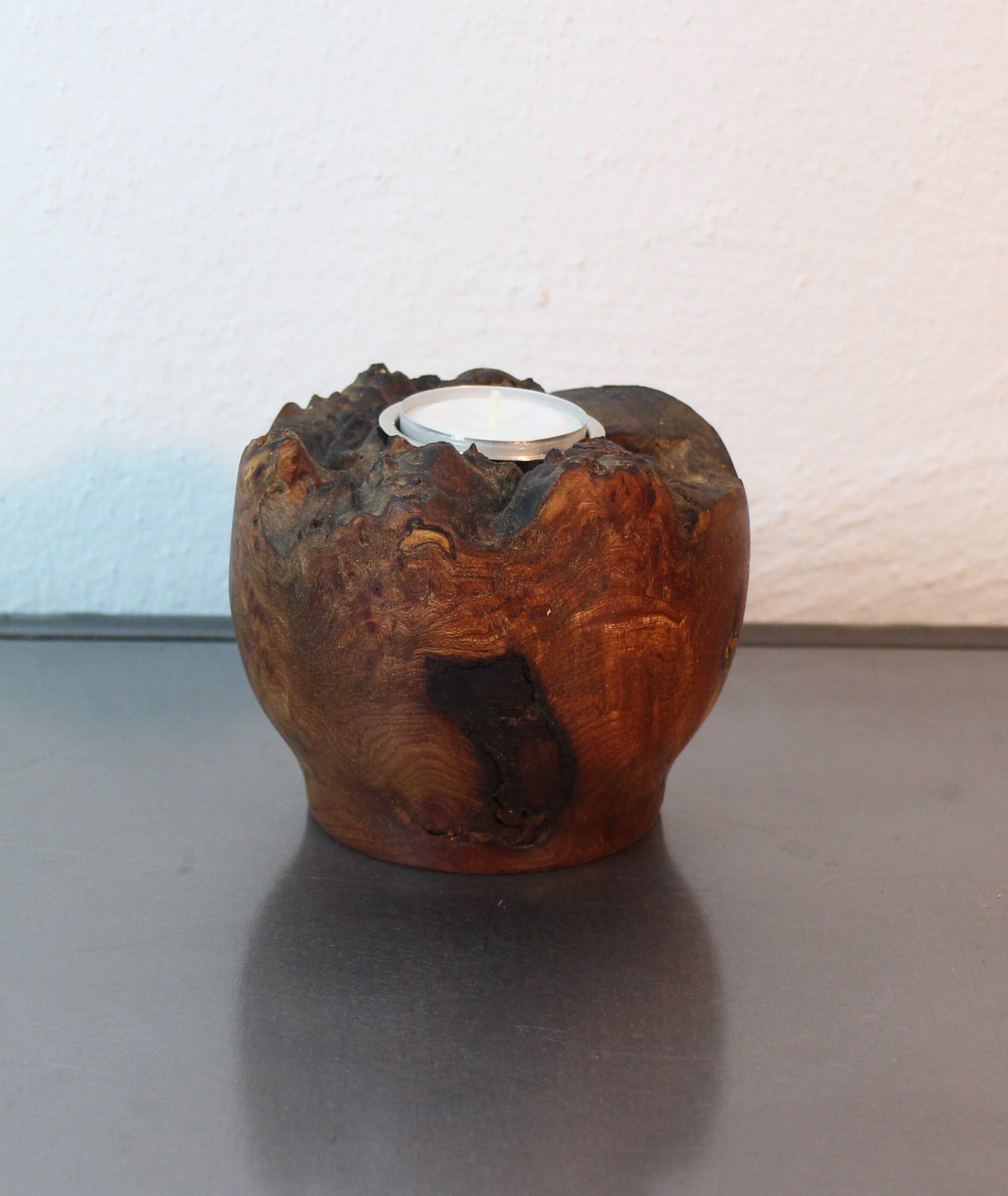 Lysestage i Elmeknude, til stort fyrfadslys, H 12 cm, D 18 cm