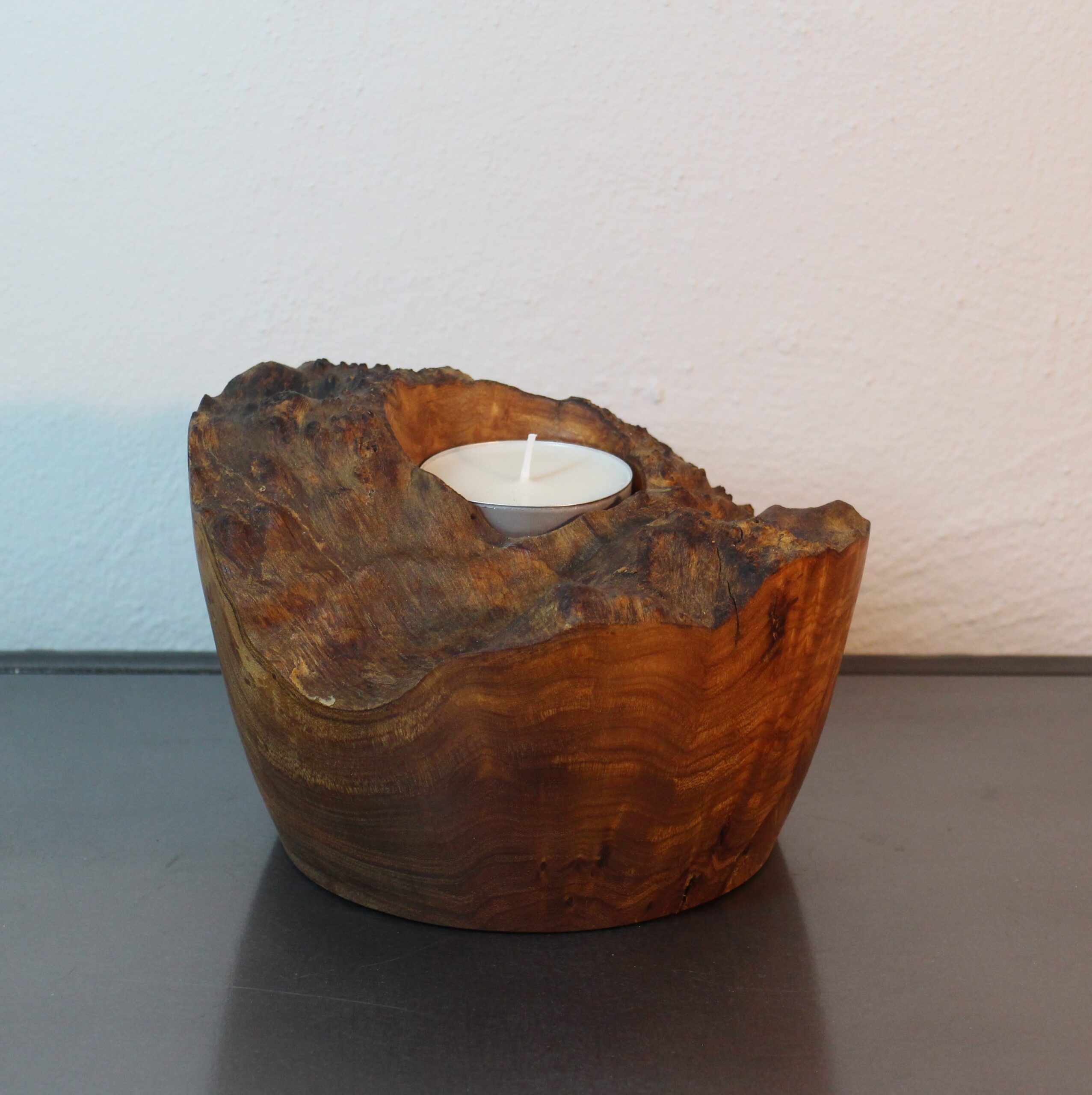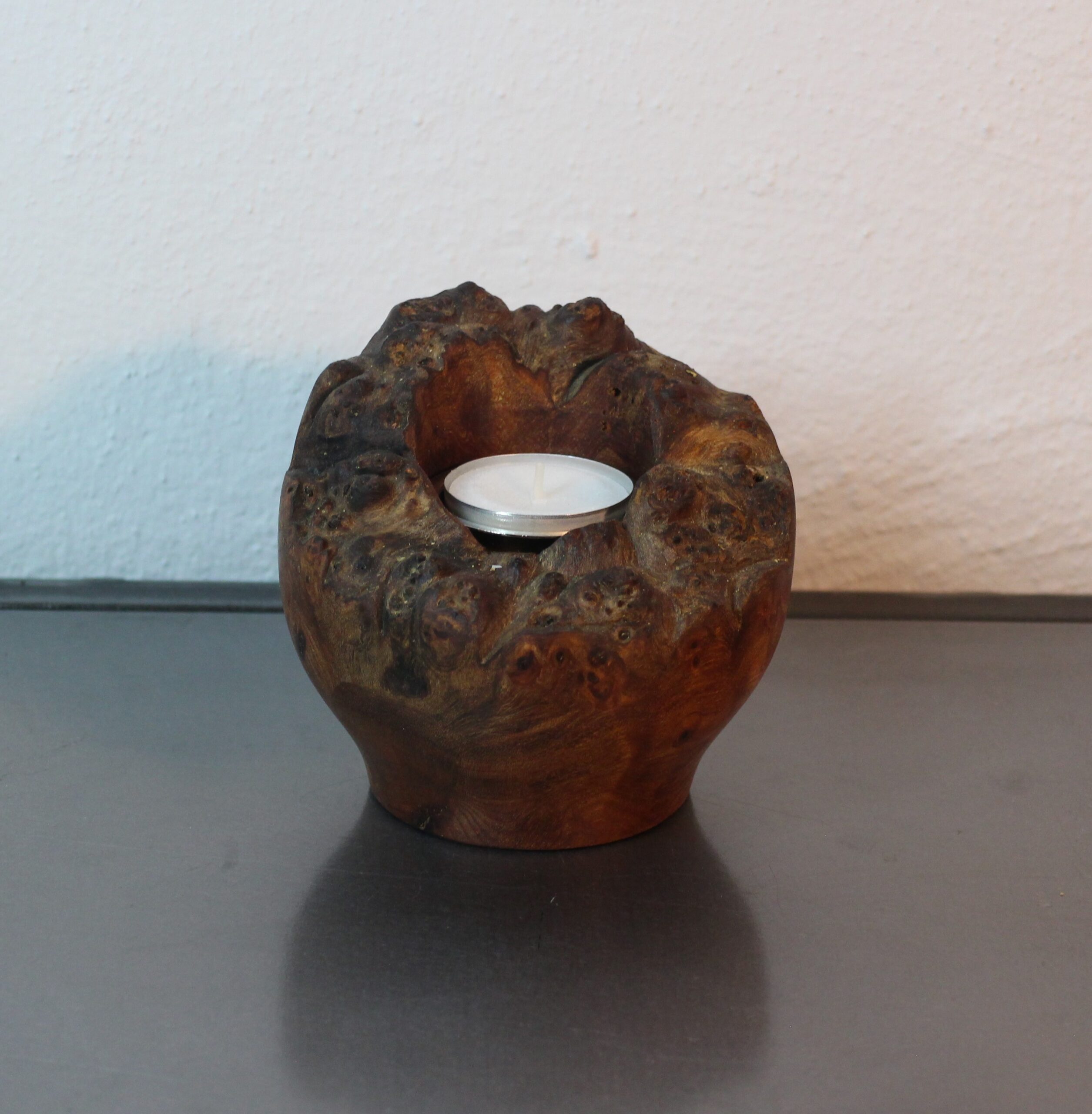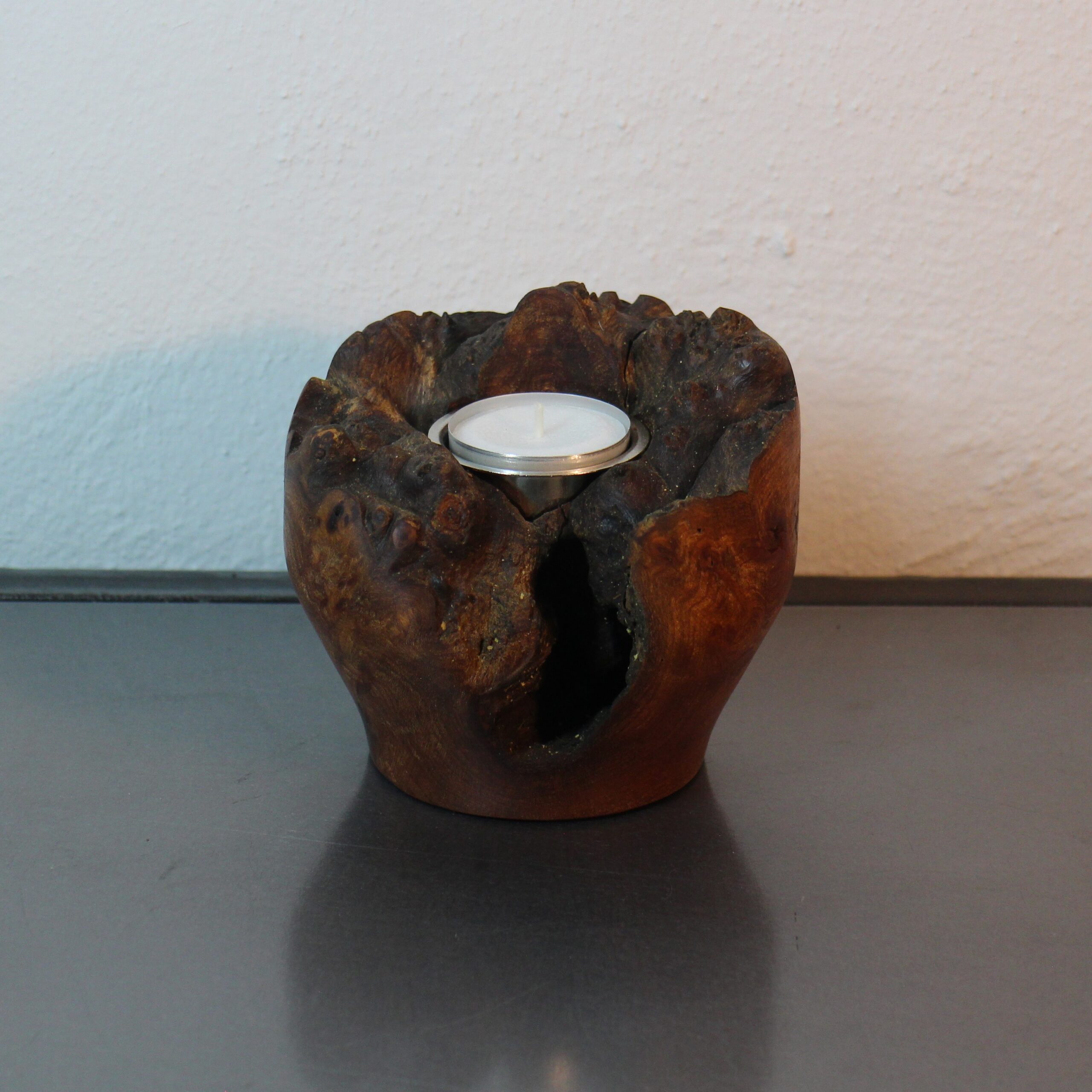 Lysestage i Elmeknude, til stort fyrfadslys, H 12 cm, D 18 cm